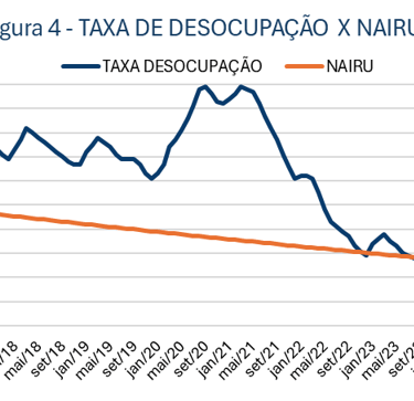 No entanto, há dois pontos cruciais para a correta avaliação desses dados. O primeiro é que, normalmente, a taxa de desocupação se move com defasagem em relação ao ciclo econômico[i] . O segundo é que a NAIRU, ou taxa neutra de desemprego, certamente vem caindo no Brasil, nos últimos anos, por várias razões: reforma trabalhista, que reduziu o passivo contingente dos empregadores, programas sociais de transferência de renda, elevação do nível educacional da força de trabalho, ocupações em home-office, principalmente após a pandemia, a regulamentação do Microempresário Individual (MEI), menor poder dos sindicatos nas barganhas salariais, entre outras. Ou seja, o mercado de trabalho tem ficado cada vez mais flexível, o que certamente reduz a NAIRU.