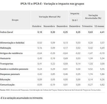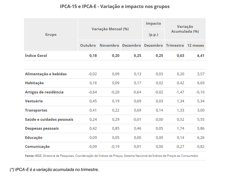 IPCA-15 varia 0,25% em dezembro – praticamente em linha com as expectativas do mercado